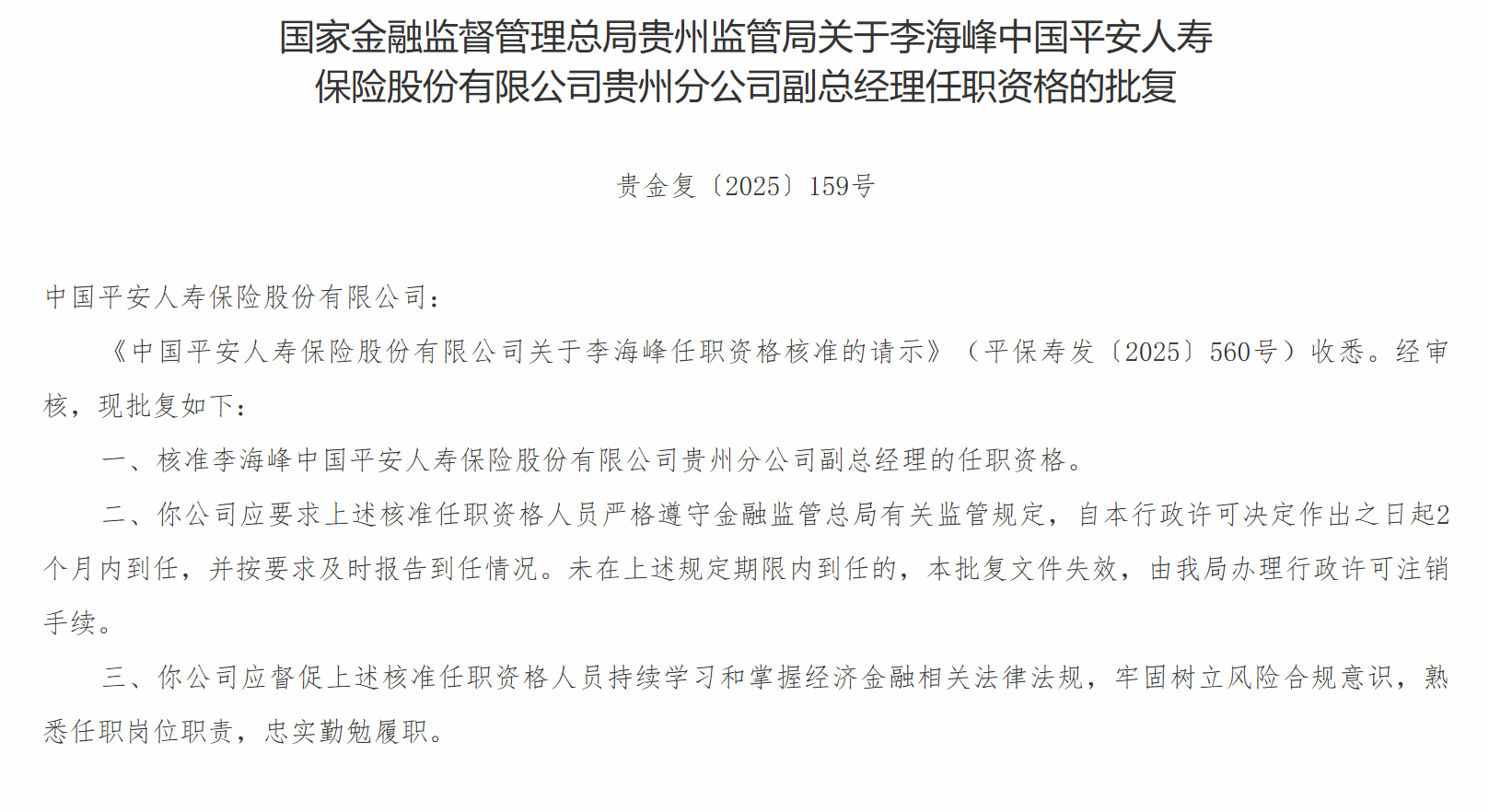 哪个股票交易平台好 李海峰获批担任平安人寿贵州分公司副总经理 哪个股票交易平台好 作者:配资炒股室 平台:在线配资炒股_实盘股票配资公司_炒股配资平台排名 更新:2025-12-18 23:41:27 阅读:59