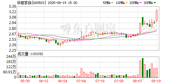 华丽家族(600503)今日涨停,全天换手率6.88%,成交额3.52亿元,振幅9.40%。龙虎榜数据显示,营业部席位合计净买入5410.44万元。